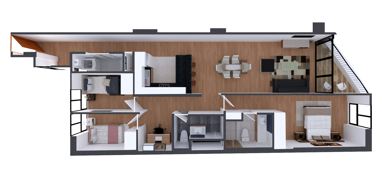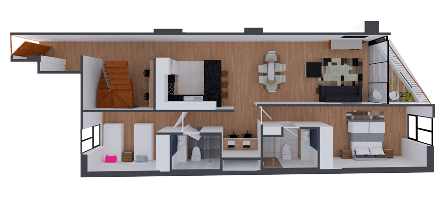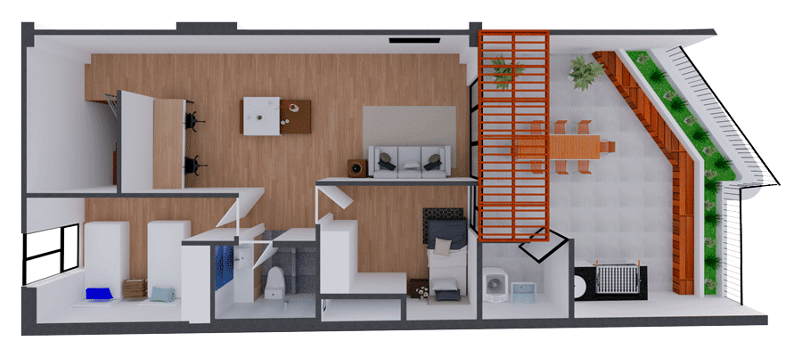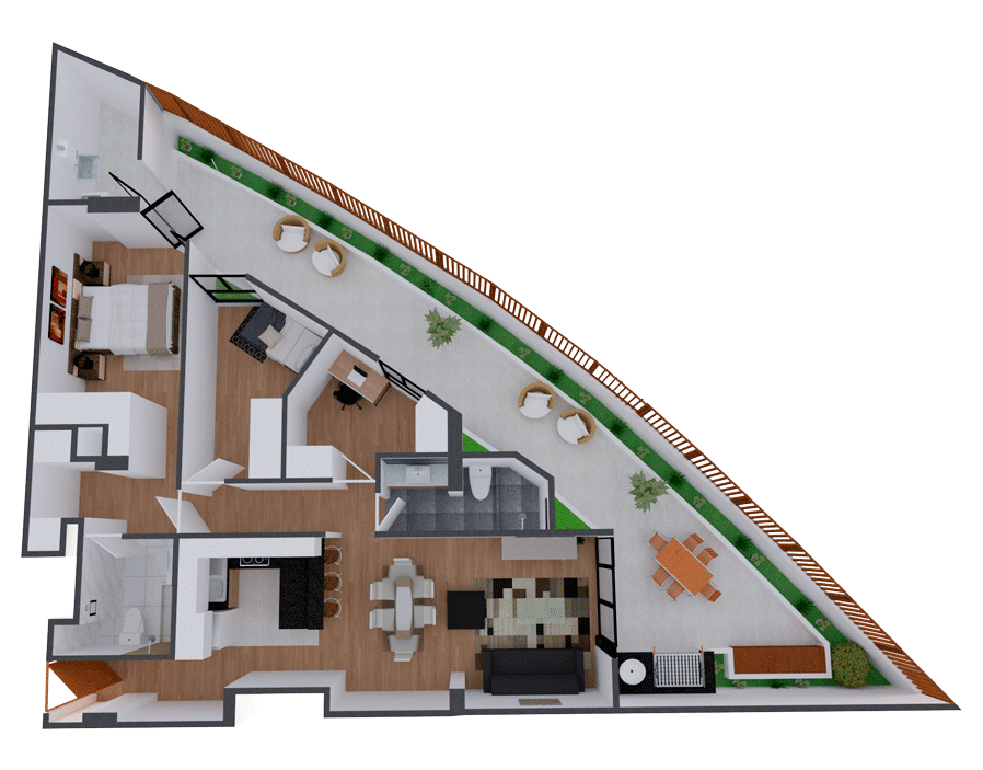 Residencial TRUJILLO 141 te ofrece departamentos con amplias terrazas y balcones, contamos con departamentos tipo flat y dúplex, con vistas panorámicas; de inmejorable ubicación con salida rápida a las avenidas El Ejercito, Salaverry, Brasil, y circuito de playas de la Costa Verde.